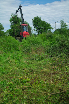 A ledöntés után egy hatalmas célgép hordta le a terület szélére a faanyagot, majd az ősz folyamán aprítékolták és elvitték.